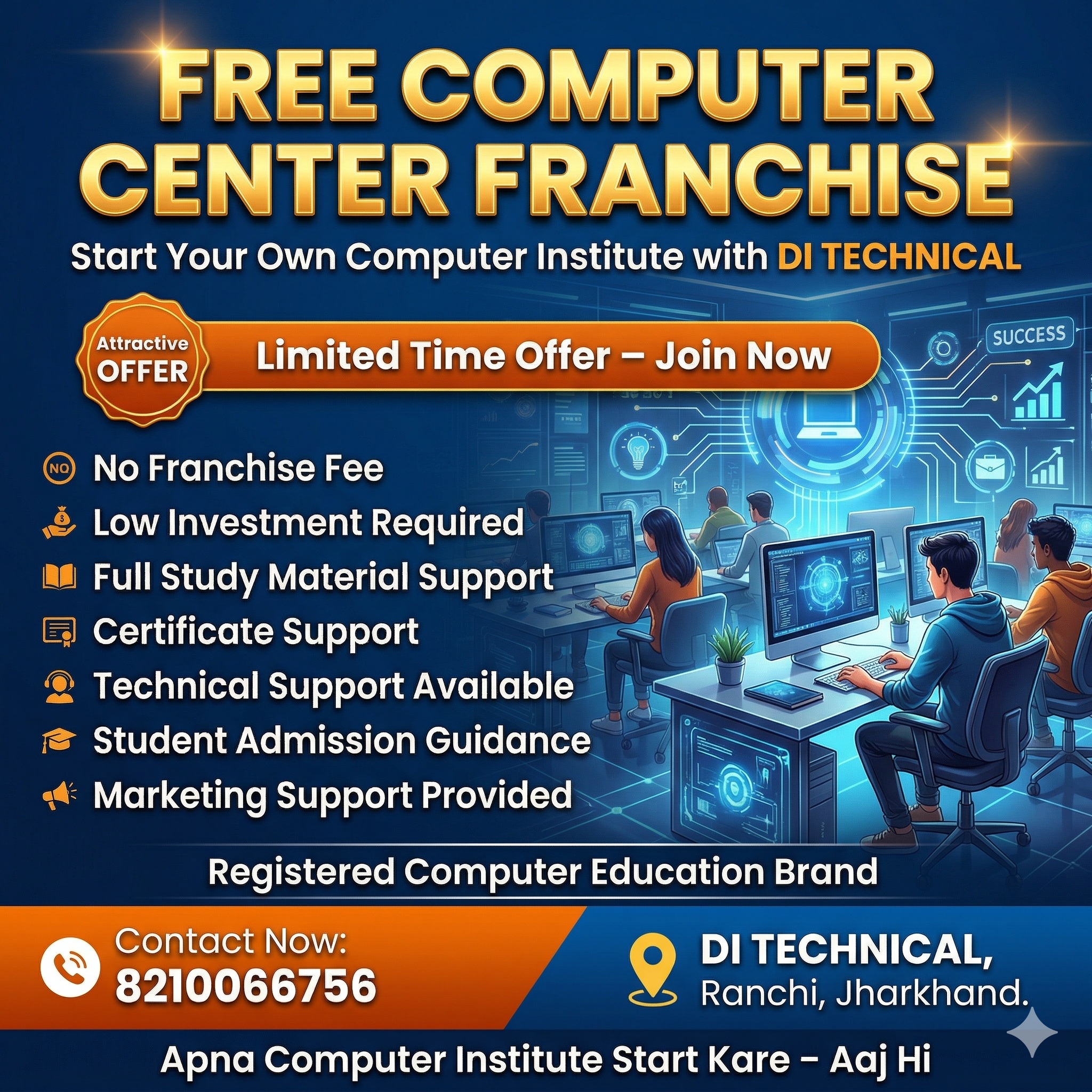 The Organization is Incorporation by GOVERNMENT OF INDIA CIN No. U80902JH2021PTC016021 & Register Study Centre of Ministry of MSME Govt. of India (UDYAM-JH-20-0007592), Its work for rural skill development basically computer education and Communicative skill development. Our organization basically highlighted in India as well as foreign country. Our organization working all over India. We deals in Computers Basic Education to advance computer Education/Vocational Education and specialization in various topics, School Computer Education. Our Institute is providing the best quality and best education to every student with that DI TECHNICAL is providing QR Code & Online Certificate verification. We are fully digitalized. DI TECHNICAL builds up expert.